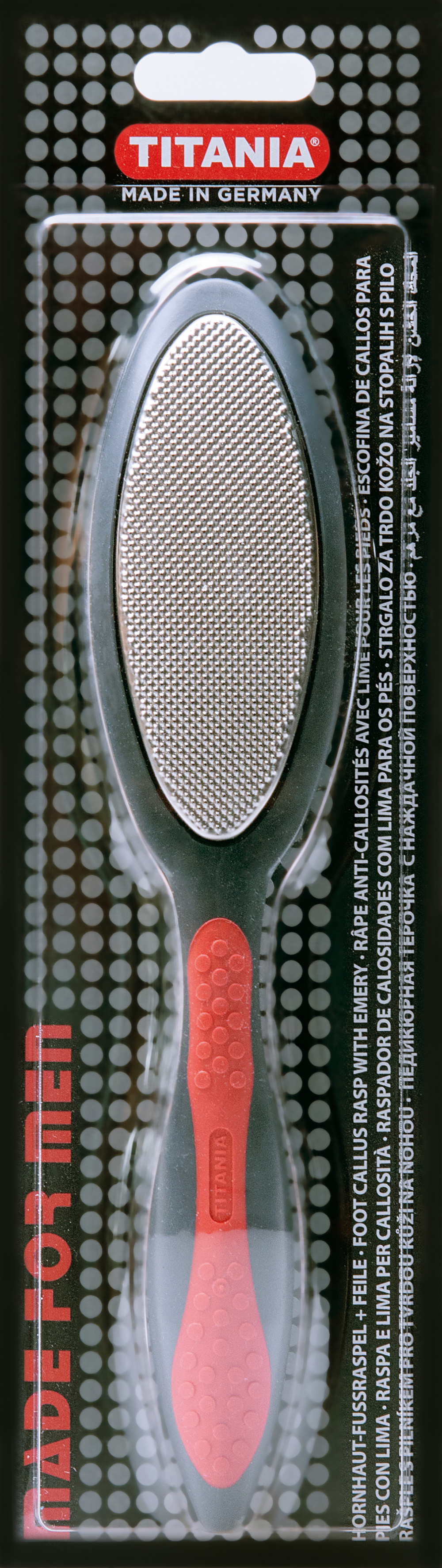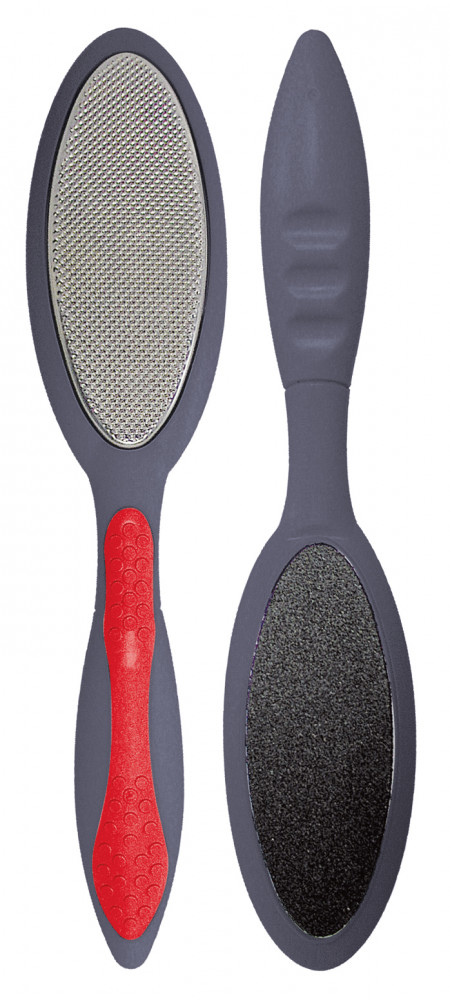 Talpreszelő, 2 funkciós (smirgli + fém), men szériás, soft-touch csúszásmentes nyéllel. 22 cm.