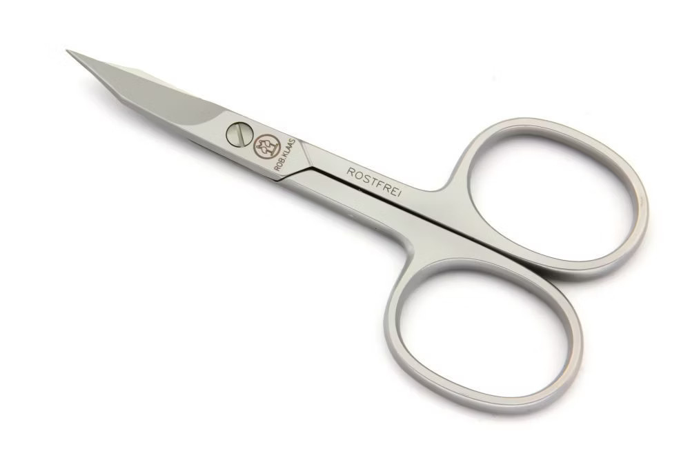 Robert Klaas Solingen rozsdamentes acél Női kis úti manikűrkészlet, barna tevebőr tokban.